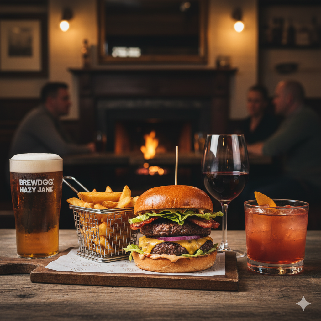 Beer: BrewDog Punk IPA – hoppy bitterness cuts through beef fat.